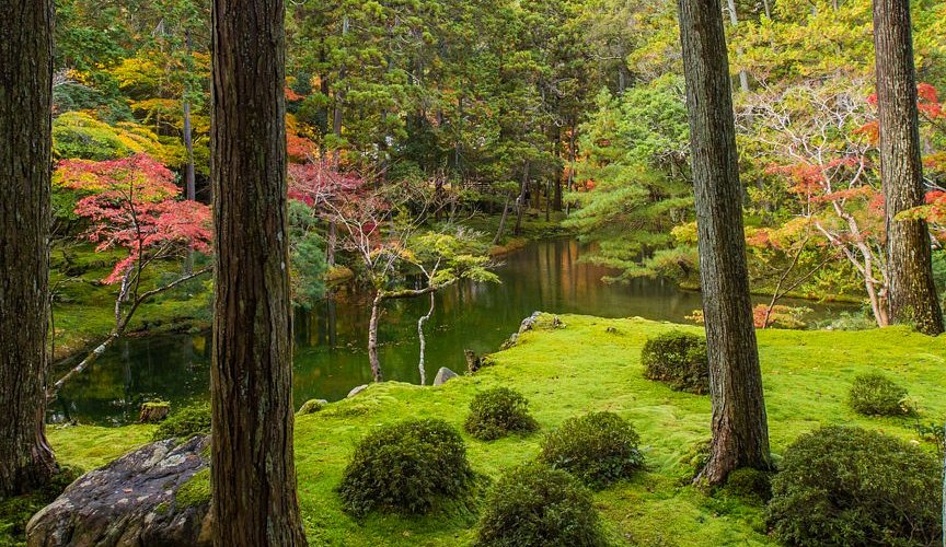 Tempelhagen i Saihōji, Kyoto var Takemitsu spesielt glad i, og mange av komposisjonene hans var inspirert av den strenge estetikken til zen-hager.